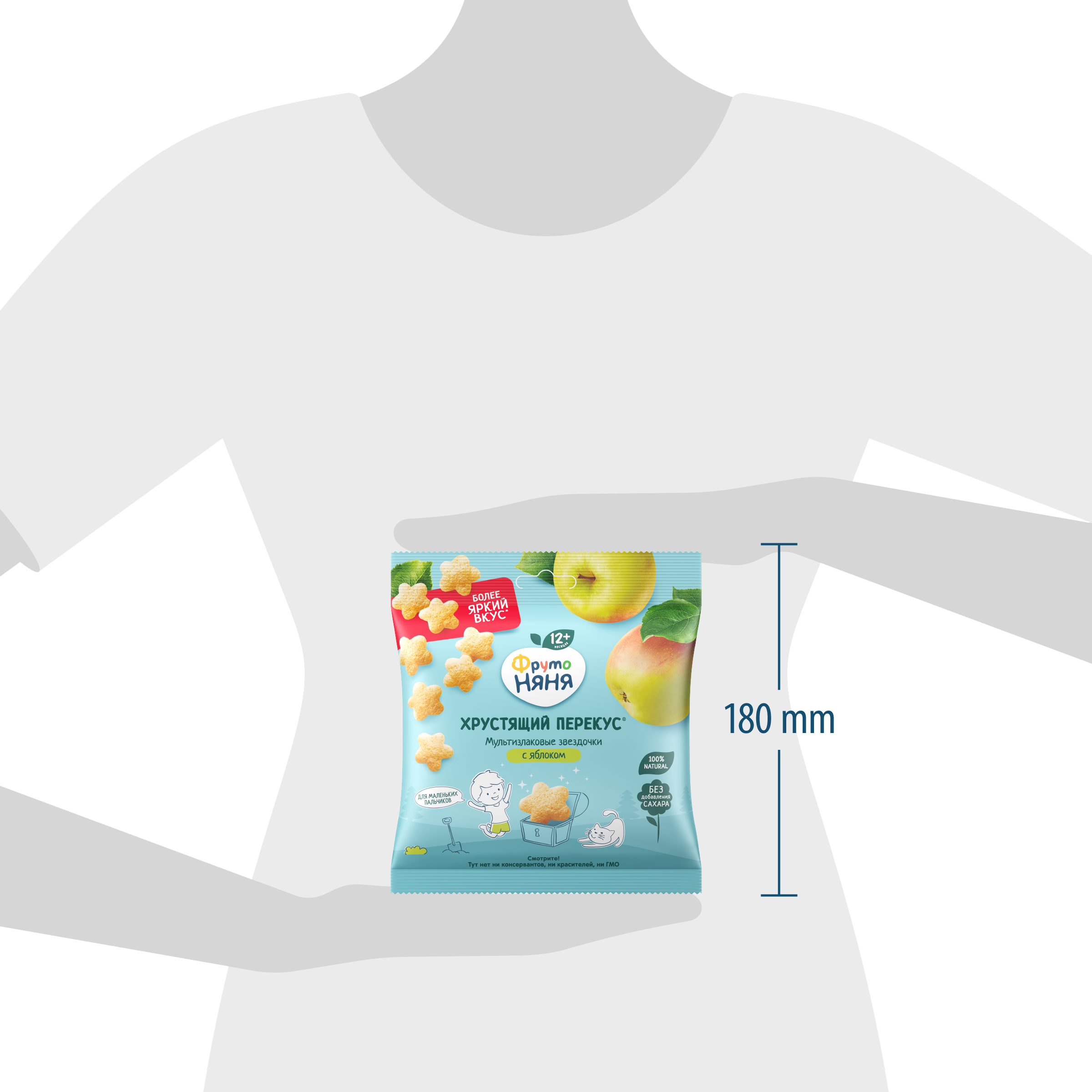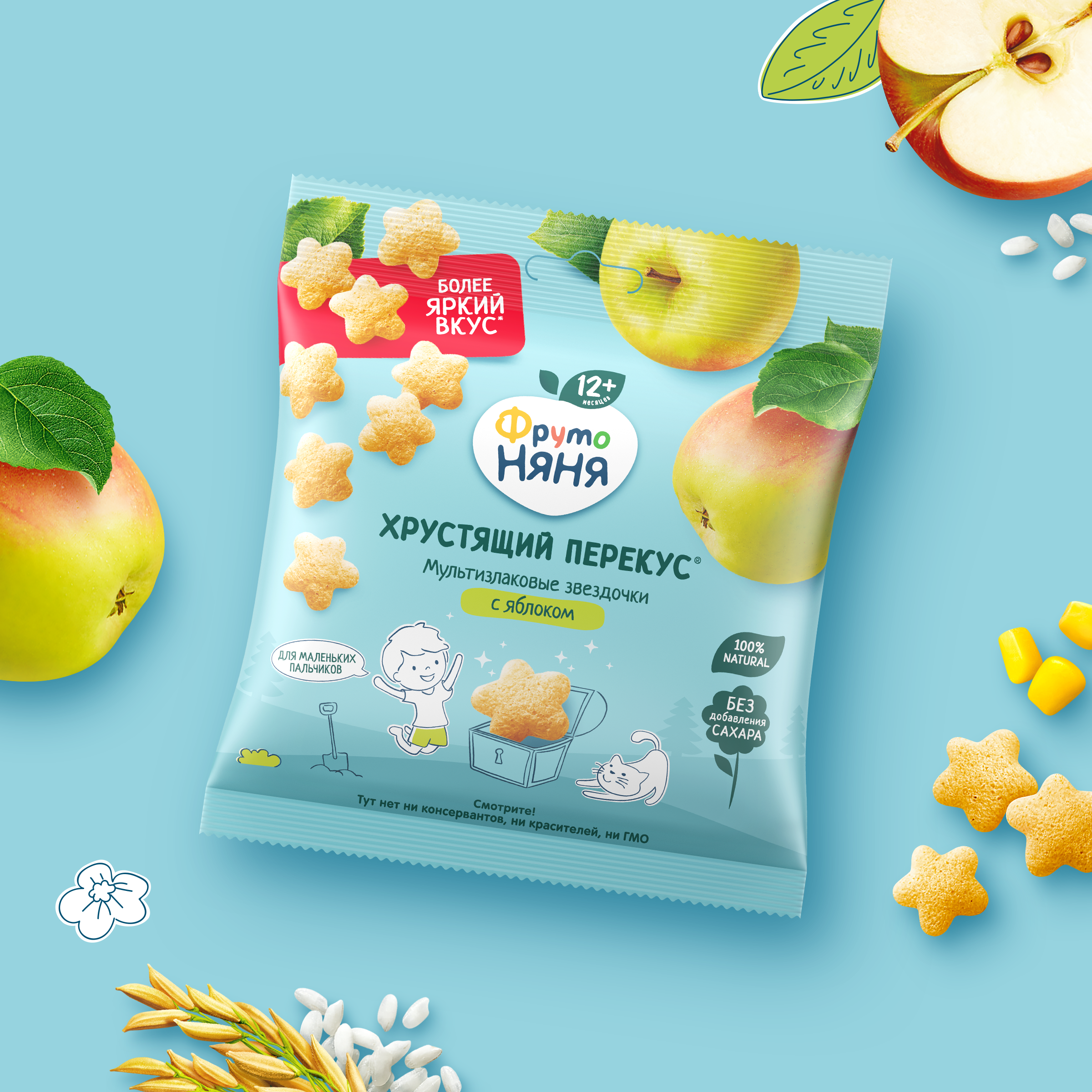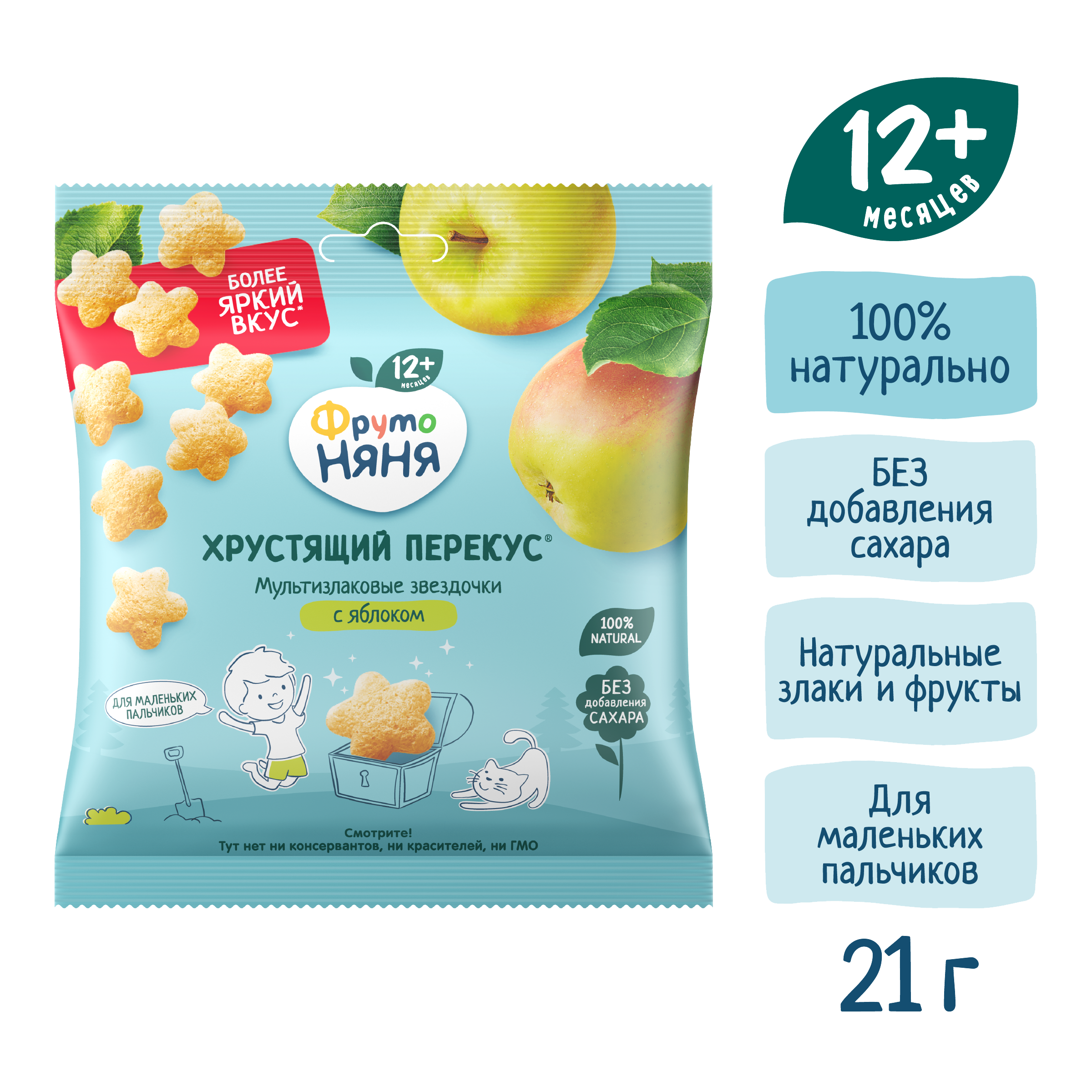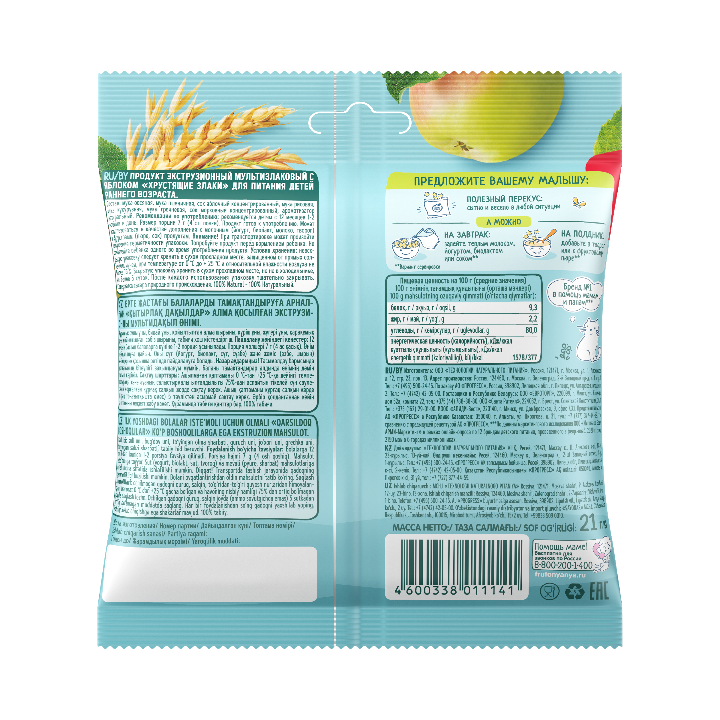 Мука овсяная, мука пшеничная, сок яблочный концентрированный, мука рисовая, мука кукурузная, мука гречневая, сок морковный концентрированный, ароматизатор натуральный. Содержатся сахара природного происхождения. Продукт может содержать следы глютена.